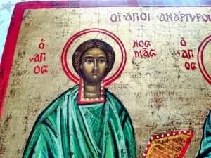 Sfintii Doctori Fara De Arginti Cosma Si Damian Lemn De Tei 20 X 30 Cm Tempera Cu Ou Foita De Aur La Aureola Icoane Bizantine Pictate Source from : https://icoanepictate.wordpress.com/2012/09/06/sfintii-doctori-fara-de-arginti-cosma-si-damian-lemn-de-tei-20-x-30-cm-tempera-cu-ou-foita-de-aur-la-aureola/ Sfinții cosma și damian (în arabă كوزماس ودميان, transliterat: Aceasta, după moartea soțului ei, a trăit în văduvie aşa îi învăţa şi pe iubiţii ei fii, cosma şi damian. Cosma si damian, chir si ioan, rugaciune cand suntem bolnavi, rugaciunea in caz de boala, minuni. În greacă κοσμάς και δαμιανός, transliterat: Alte articole din rugaciuni pentru diferite nevoi.